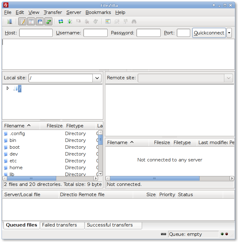 The Quick Connect bar is the quickest way to connect to your server. Start FileZilla and look immediately under the toolbar for the Quick Connect bar: