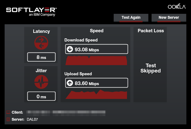 I work in the SoftLayer office in downtown Houston, Texas. In network-speak, this location is HOU04. You won't find that location on any data center or network tables because it's just an office, but it's connected to the same global backbone as our data centers and network points of presence. From my office, the "last mile" doesn't exist; when I access a SoftLayer server, my bits and bytes only travel across the SoftLayer network, so we're effectively cutting out a number of uncontrollable variables in the process of running network speed tests.