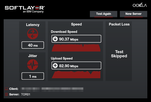 For better or worse, I didn't tell any network engineers that I planned to run speed tests to every available data center and share the results I found, so you're seeing exactly what I saw with no tomfoolery. I just fired up my browser, headed to our Data Centers page, and made my way down the list using the SpeedTest option for each facility. Customers often go through this process when trying to determine the latency, speeds, and network path that they can expect from servers in each data center, but if we look at the results collectively, we can learn a lot more about network performance in general.