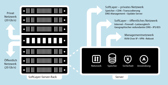 Alle SoftLayer-Rechenzentren umfassen Folgendes: