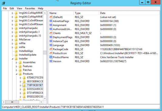 2. Go back to control panel and open up Add/Remove Programs again... uh oh Citrix XenServer Tools Installer is back! No worries, this happens 99% of the time. What will need to happen now is an entry from the registry will need to be removed. Open regedit and do a search for "Xen", press F3 to find the 2nd entry which should look similar to the image below. It should also contain this entry, "Citrix XenServer Tools Installer". Delete the folder for this entry, once deleted it is time to reboot the VSI.